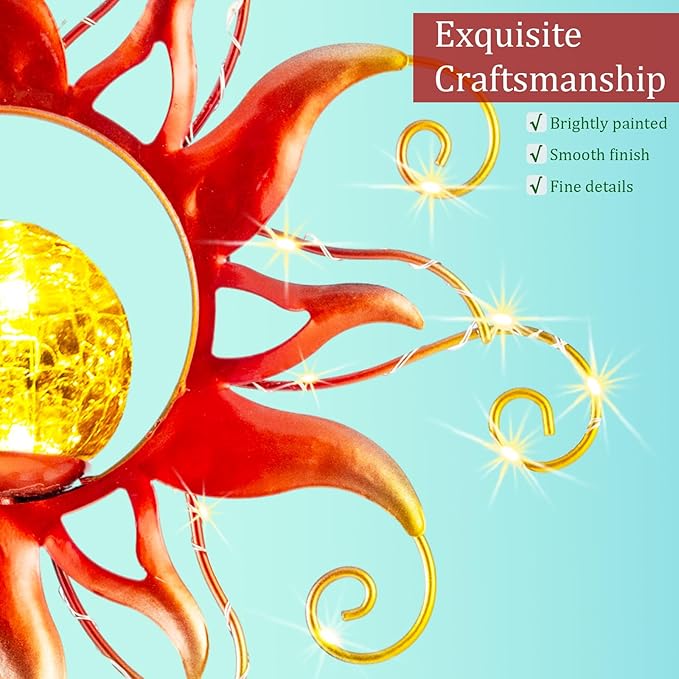 - ☀️Versatile Application Outdoor Decor☪️: Compact, yet powerful solar panels, IP65 waterproof design for whole body, this stunning sun outdoor lights will be a show-stopping statement at your home. It will be a great decoration for your garden, lawn, yard, pathway, patio whether day or night.