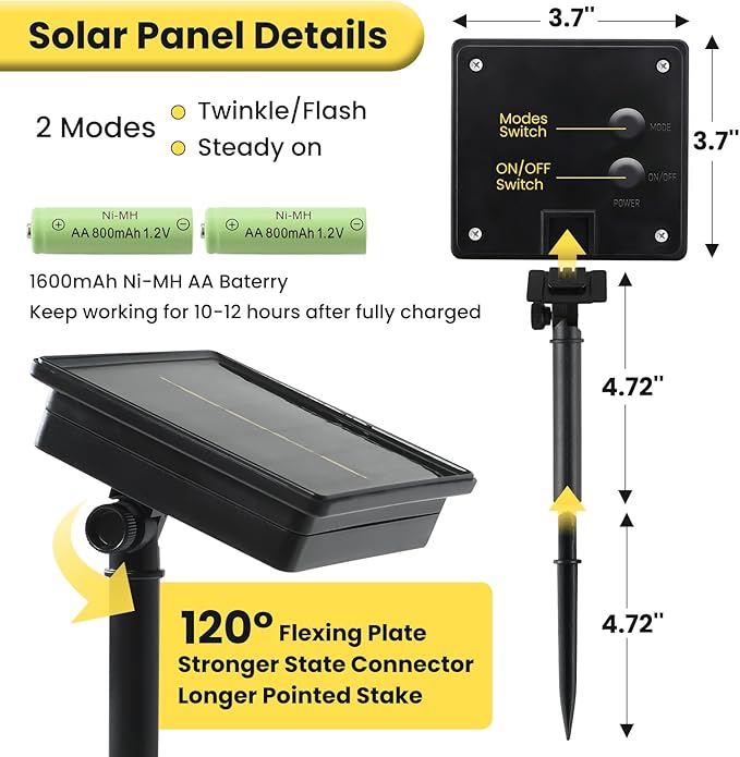 - 【Efficient & Long-Lasting】 With the high-efficiency solar technology, our solar outdoor string lights are seriously energy-saving! Boasting a built-in 1600mAh high-capacity rechargeable battery, the solar lights outdoor string charges up during the day and magically turns on at dusk. Fully charged, this solar powered string lights outdoor can glow for up to 10-12 hours, adding a cozy touch of brightness to your home.