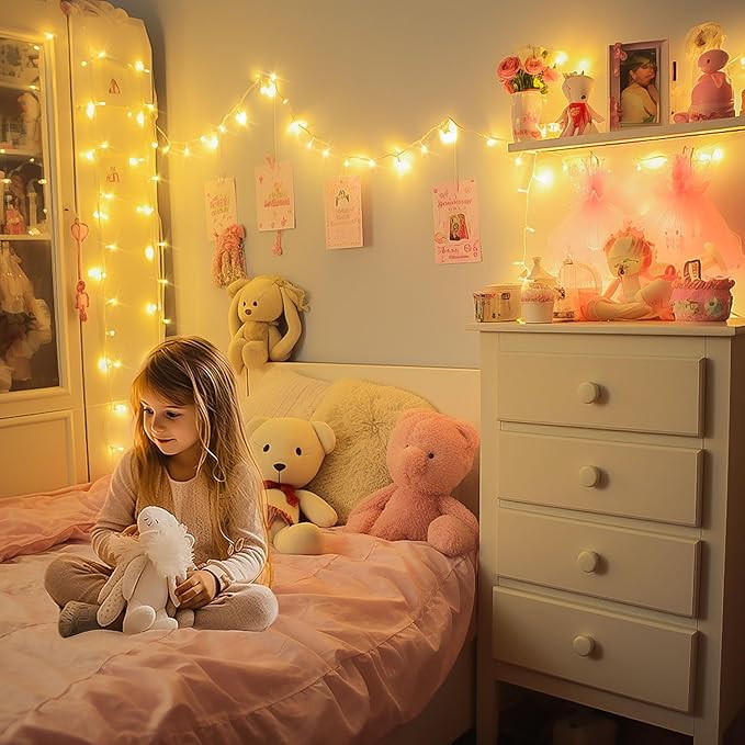- 【Versatile for Various Scenes】Whether as hanging string lights, wedding lights, Christmas lights outdoor, backyard lights, or patio lights, warm white string lights for outside excels, and indoor string lights for bedroom is no less beautiful decorated,hang from the corner of the ceiling to create a starlight effec, or wrap indoor string lights around a post or bedpost to add warmth