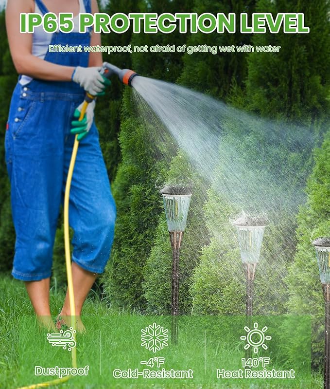 - 【All-Weather Resistant & IP65 Waterproof】The solar pathway lights for yard crafted with a premium durable shell, high-transparency thickened lampshade, and robust materials. Its operating temperature range is -4°f~140°f. The solar lights outdoor waterproof IP65 design can provide normal lighting in severe conditions such as heavy snow, heavy rain, frost, etc., corrosion resistant abs plastic can ensure long lasting life and durability of this outdoor lights for house.