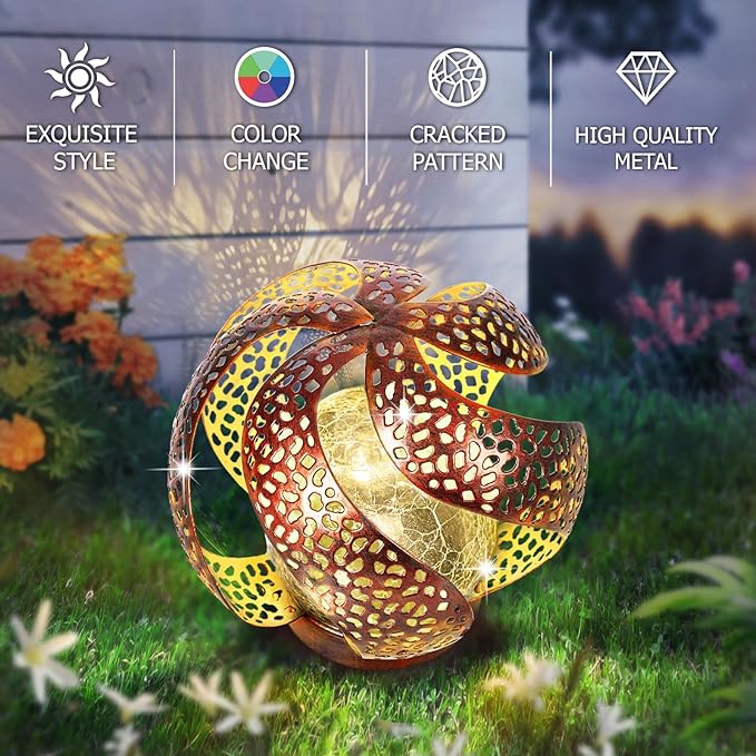 - Moroccan-Inspired Design: Introducing our latest addition to the solar lights outdoor, featuring a captivating Moroccan-style hollow cracked glass design. This intricate Moroccan-Inspired pattern adds a touch of exotic elegance to your outdoor space, creating mesmerizing light patterns that dance around your garden.