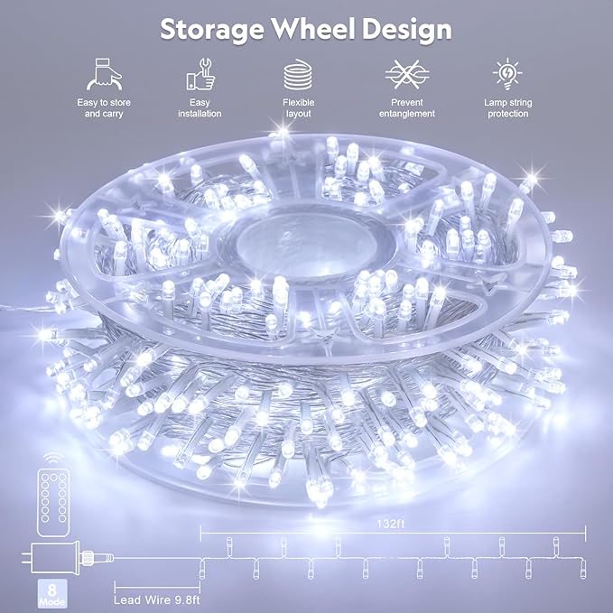 - Elevate your holiday decor with 400LED 132feet cool white Christmas lights,perfect for Christmas trees, festive lighting,Christmas wreaths, party ambiance, These twinkle lights also add charm to backyard canopies, patio,wedding