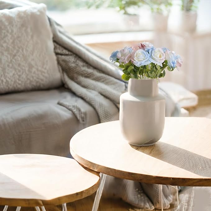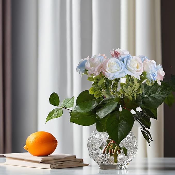 Pink Blue Mix Artificial Roses Fake Flowers Not Bend The Peduncle with Stems for DIY Wedding Bouquets Bridal Shower Centerpieces Arrangements Tables Decorations 24pcs