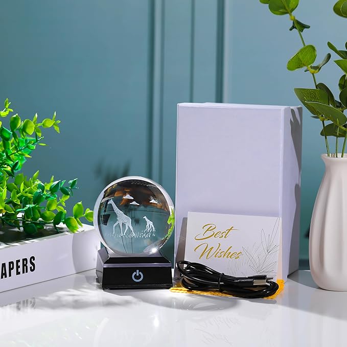 - ๐Crystal Ball Giraffe Gifts - Crystal Glass Giraffe Figurine Decor size: 3.14". Made of HIGH-QUALITY K9 Crystal, Interior images are carved by Advanced 3D Laser Engraving Technology, nice Giraffe Gifts for mom on XMAS Mothers Day