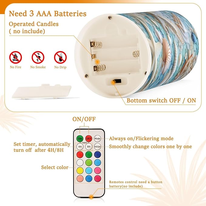 - Convenient Remote Functions: Includes an 18-key remote controller with a timer. You can control these candles remotely when they are placed somewhere difficult to touch. Set 4H/8H timers will save you trouble turning them on/off, they will come back on automatically at the same time every day. Also, you can adjust the light color as you want