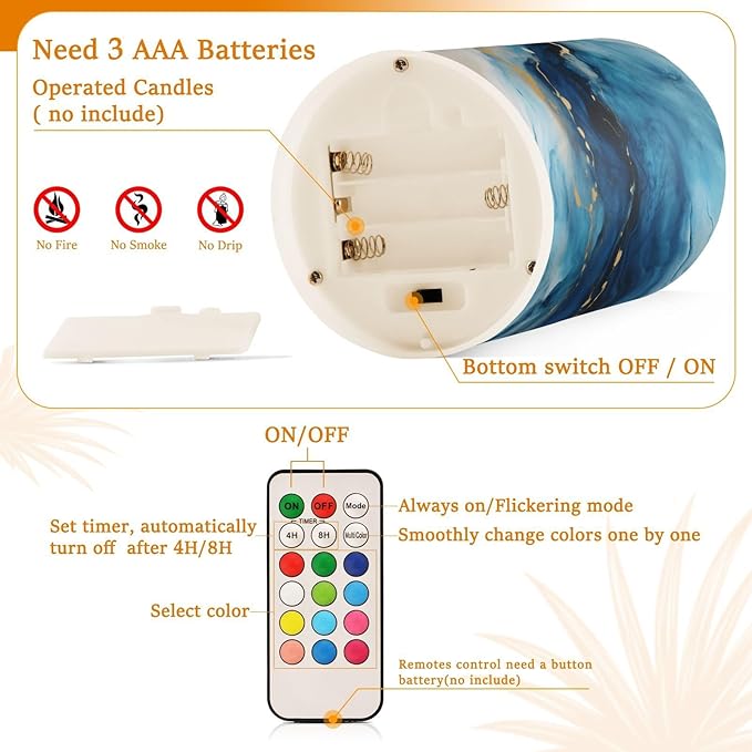 - Convenient Remote Functions: Includes an 18-key remote controller with a timer. You can control these candles remotely when they are placed somewhere difficult to touch. Set 4H/8H timers will save you trouble turning them on/off, they will come back on automatically at the same time every day. Also, you can adjust the light color as you want