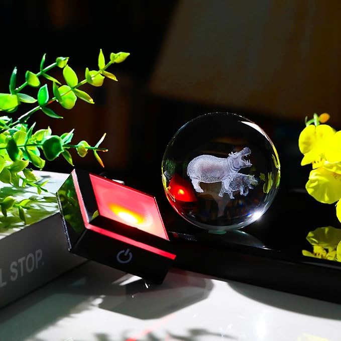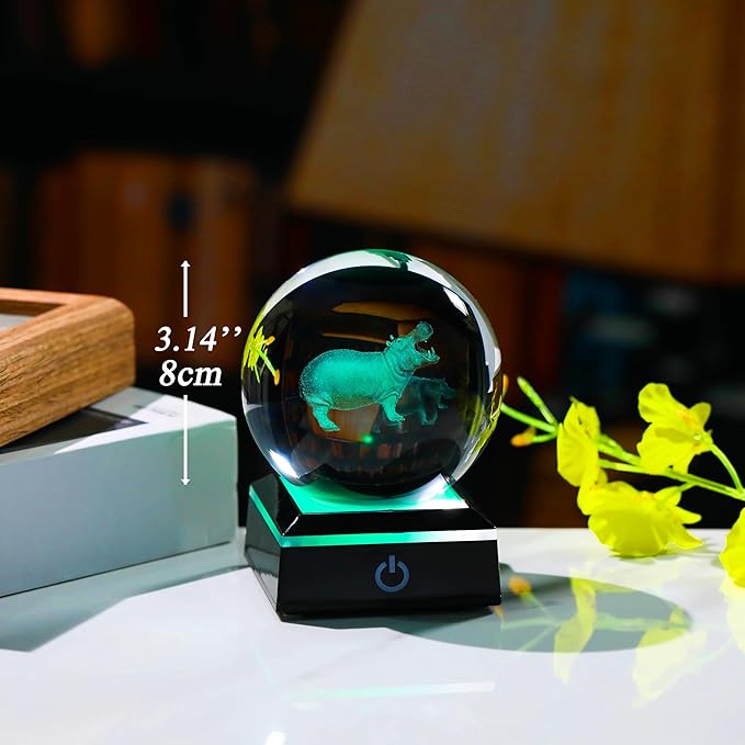 - Crystal Ball Hippopotamus Gifts - Crystal Glass Hippo Figurine Decor size: 3.14". Made of K9 Crystal, Interior images are carved by Advanced 3d Laser Engraving Technology.