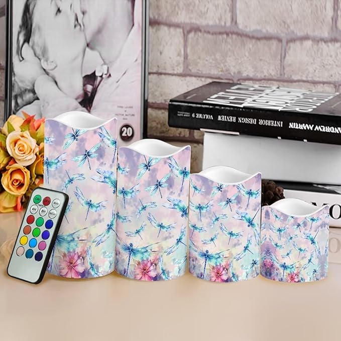 Ystardream Beautiful Dragonfly Flameless Candles Battery Operated with Timer, Remote Control, LED Flashing Candle Sets, Warm Color Flickering Candles Light for Party Room Table Decor Set of 2