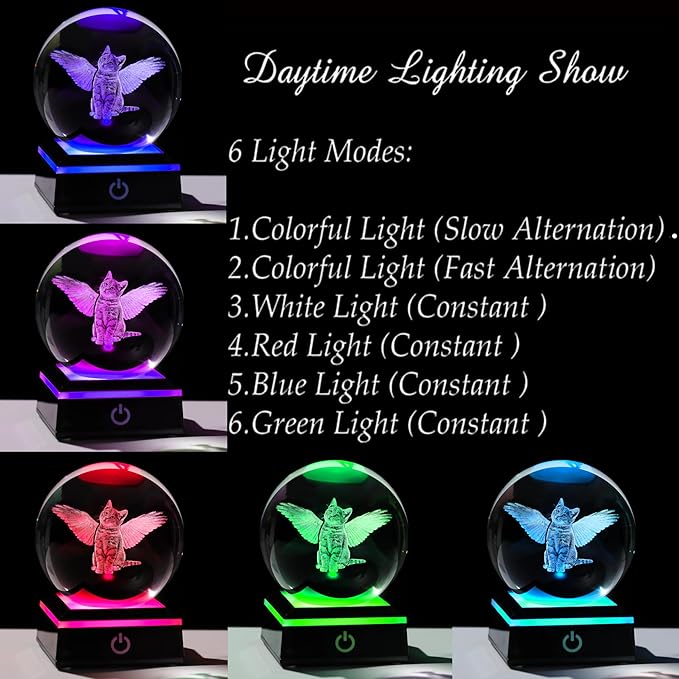 Qianwei Cat Memorial Gifts for Loss of Cat - Pet Memorial Cat Angel Statue 3D Crystal Engraved Office Decor - Remembrance Bereavement Passing Away Sympathy Gifts in Memory of Death