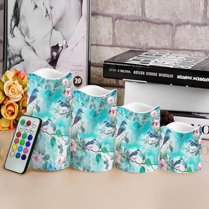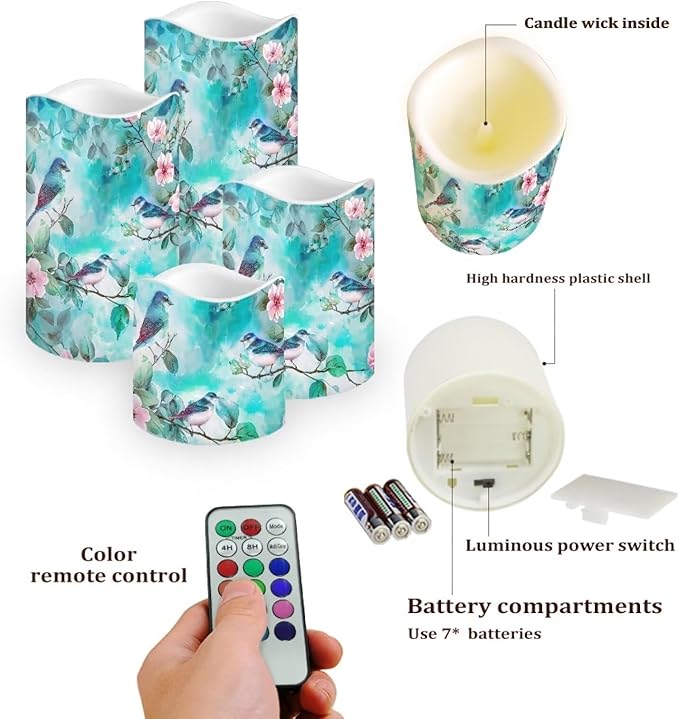 Ystardream Light Candles 4 Pack Battery Operated Color Changing Timer Remote Control Fake Pillar Tealights Beach Wedding Home Indoor Decor Modern Hummingbirds