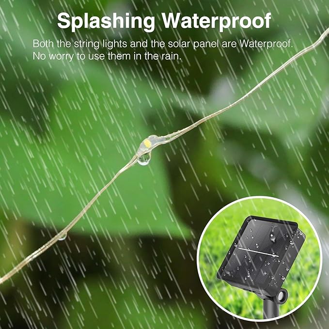 - Waterproof: Solar fairy lights can withstand all kinds of weather and are not afraid of rain, snow, suitable for outdoor use. Decorate the garden, yard to welcome every happy moment