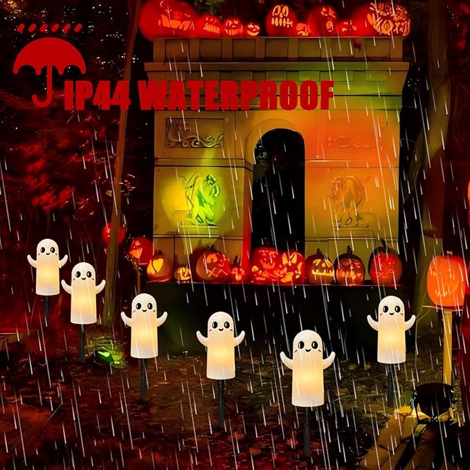 - Weatherproof and Durable: Halloween pathway stakes lights designed to withstand outdoor conditions, plug in white ghost halloween pathway lights are made with waterproof materials, ensuring they can handle rain, wind, and even snow without any issues. Built to last, outdoor decoration garden lights will be a staple in your Halloween decorations for years to come.