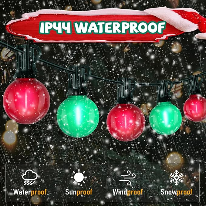 - Weather-Resistant LED Outdoor Lights: Outdoor Christmas lights for patio designed for both indoor and outdoor use, G40 LED frosted red and green christmas lights are weather-resistant and can withstand various weather conditions, ensuring your holiday decorations remain stunning. Hang frosted red and green string lights outdoor on your porch, wrap them around trees, or use them indoors to create a cozy holiday atmosphere.