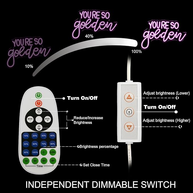 - Neon sign design: "YOU RE SO GOEDEN" neon light, adding a touch of glow to any room! Whether you want to create a cozy atmosphere in your bedroom or living room, show your friends and family that your home is their happy place, or give a special gift to your loved one
