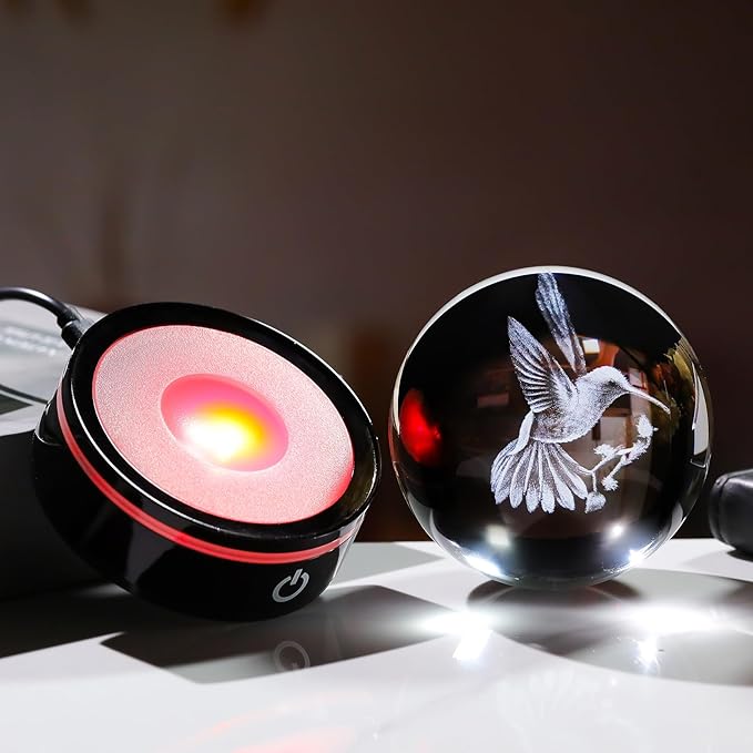 - Great Home Decor: The crystal hummingbird ball is an eye-catching home decoration, perfect for display on a table, wall shelf, fireplace, or desk, with a multi-color lamp base, it can be used as a decorative accent during the day, and it will shine under the light emitted by the bracket at night, adding warmth to the space and can be used as a cozy night light