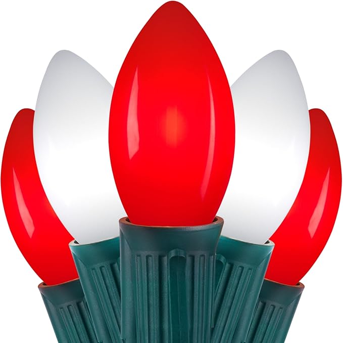 - Old Fashioned Appearance: This traditional red and white C9 LED plastic bulb of Christmas lights is made of inner abrasive finish, creating a misty and retro lighting effect, harmonious and comfortable atmosphere, lighting up your life and creating exclusive memories for you