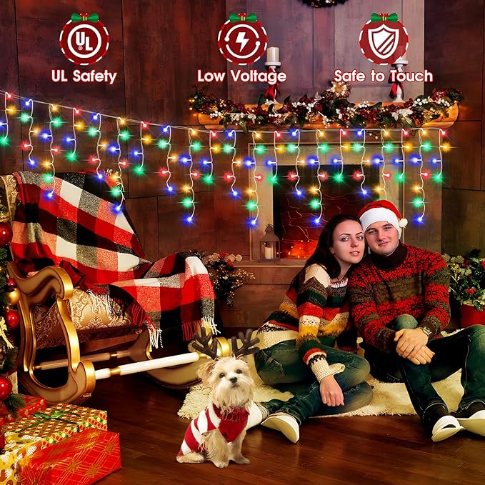 - Waterproof UL Safe to Use: IP44 waterproof grade Christmas decoration string lights are perfect for outdoor use without any damage. Understand any extreme weather, including wind, rain, heavy snow, and hot sun. These super brighter decorations ice lights can be used both indoor and outdoor. Tips: Please note that the US Plug is NOT