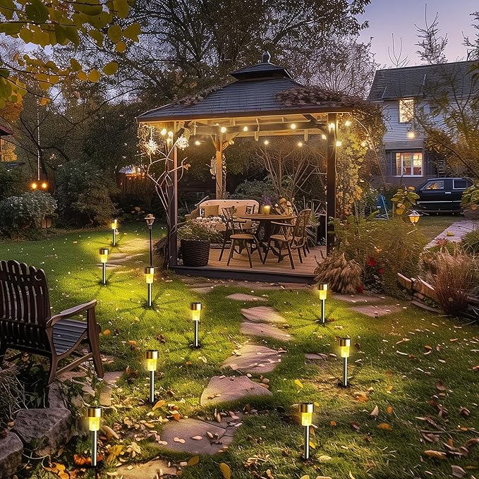 - [APPLICATION]: You can use solar pathway lights anywhere outdoors such as garden, landscape lighting, patio, lawn, villa, path and yard. Warm white light helps to create a warm atmosphere and light up your life (Warm White)