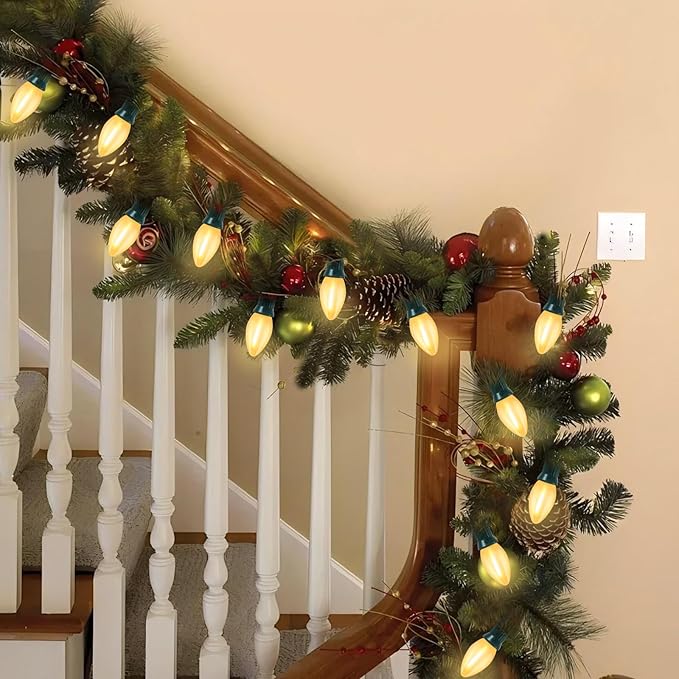 - Indoor & Outdoor Use: UL-certified for safety, c7 led christmas lights outdoor are designed to shine brightly both indoors and outdoors. C7 led frosted bulbs that produce a soft, diffused glow, creating a serene winter wonderland vibe for indoor or outdoor spaces. Use them to light up Christmas trees, patios, porches, or holiday parties.