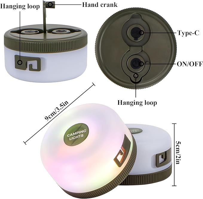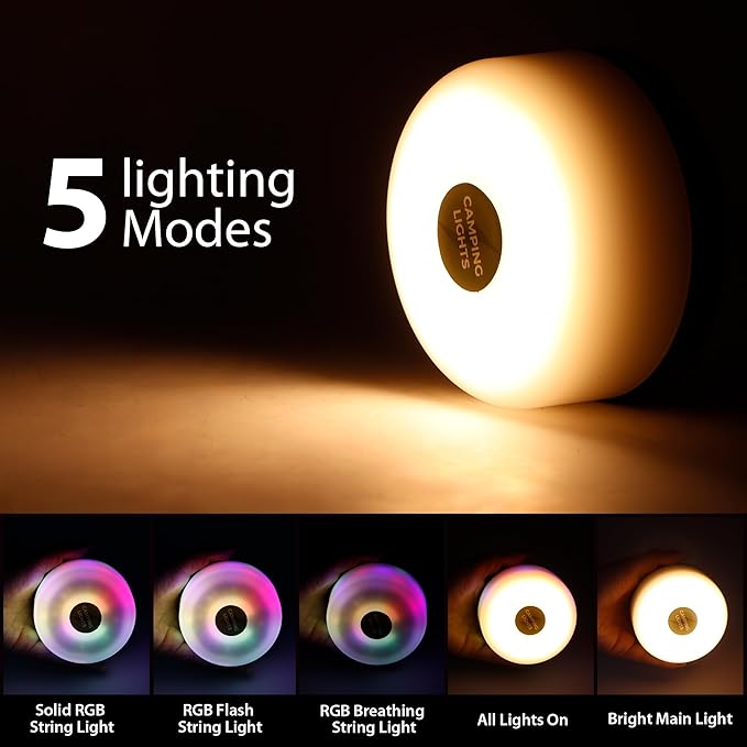 - Easy to Use and Portable: Compact at just 3.60 × 1.91 inches, these lights are easy to carry and set up. Simply pull out the string lights to use, and retract them by twisting the handle when you’re done. The five lighting modes—steady string light, breathing mode, flashing mode, main light on, and all lights on—offer versatile lighting options for any occasion.