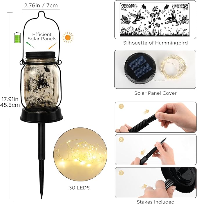 Kyoryuger Solar Hummingbird Lantern Outdoor Garden Decor, Gifts for Women Mom Gradma Birthday Gifts, Hanging Solar Light Lawn Ornaments Home Decoration Outside for Yard, Patio,Backyard,Porch, Pathway