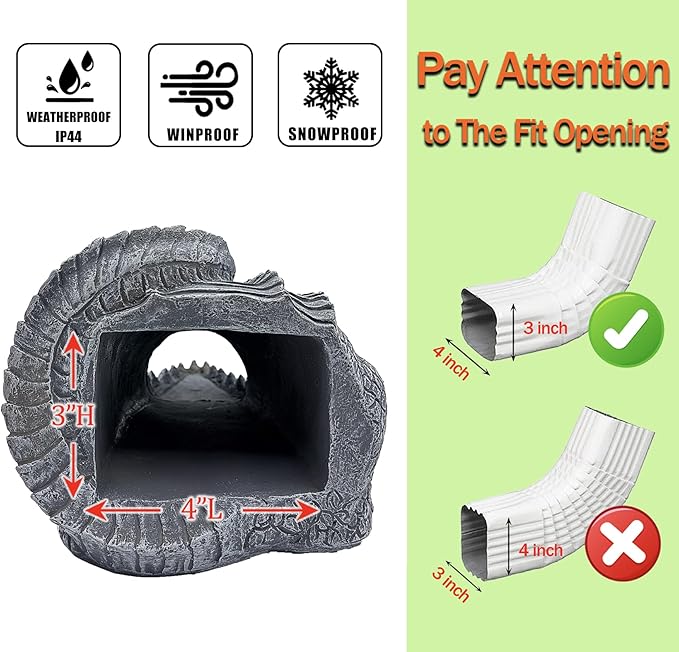 - Easy Installation: With its perfect size (8.26" L x 7.28" W x 13" H) and simple attachment mechanism, this crocodile gutter extender fits rectangular downspouts up to 3" x 4", making it easy to install and secure.