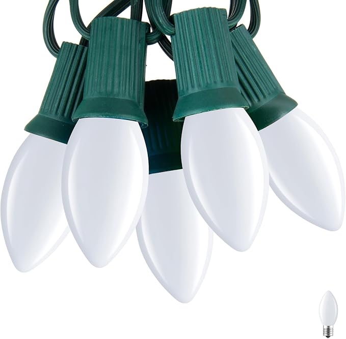 - Widely Used: C7 LED lights emit a traditional white color glow, adding a pleasant atmosphere to your life. The hanging roof lights are perfect for porches, gardens, patios, walls, foyers, Christmas tree window parties and Christmas birthday parties