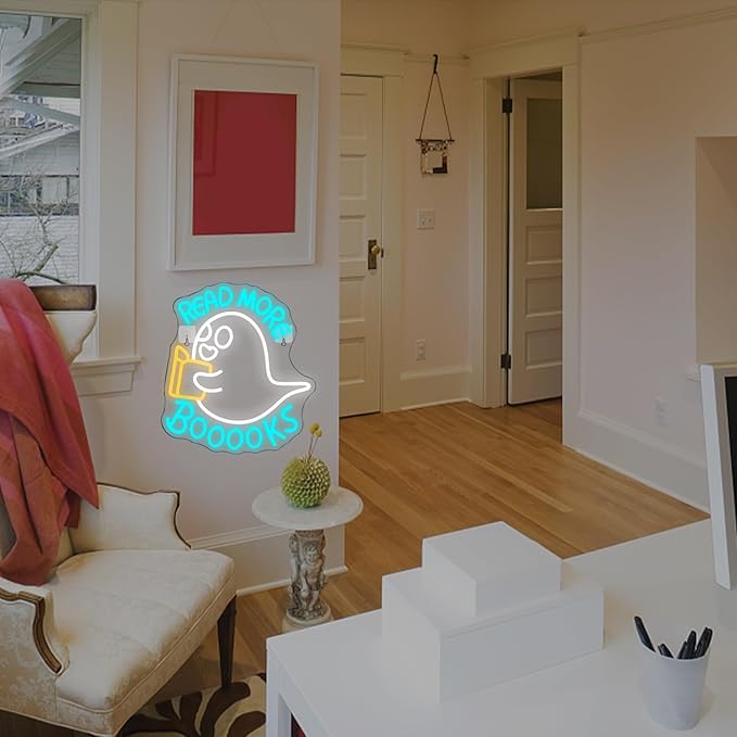 - Read More Booooks Neon Signs for Wall Decor: The read more books neon sign is a captivating addition to any book lover's space.Whether placed in a home library, bookstore, or study area, this neon sign is sure to inspire a love for reading.
