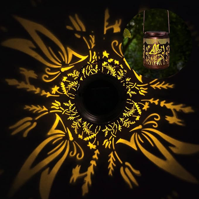 - 【Delicate Butterfly Pattern】- The hanging lantern adopts retro hollow design with warm light with butterfly pattern, casting beautiful patterns on the wall or lawn, which bring life and fun to your garden, a creative and ideal gift for grandma, mom, women and friends during holidays.