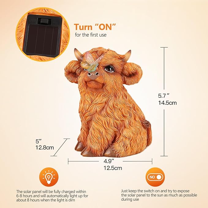 Highland Cow Solar Powered Outdoor Garden Statue, Resin Highland Cow Statue with Solar Light Lantern, Decorative Lawn, Yard Outdoor Highland Cow Decor. Unique home decorations, gifts for women