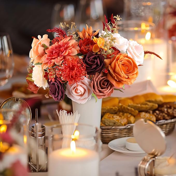AGIRL Artificial Flowers Combo Silk Mix Purple Fake Flower with Stems for DIY Wedding Bouquets Centerpieces Arrangements Table Chair Decor Baby Shower Home Decor (Terracotta)