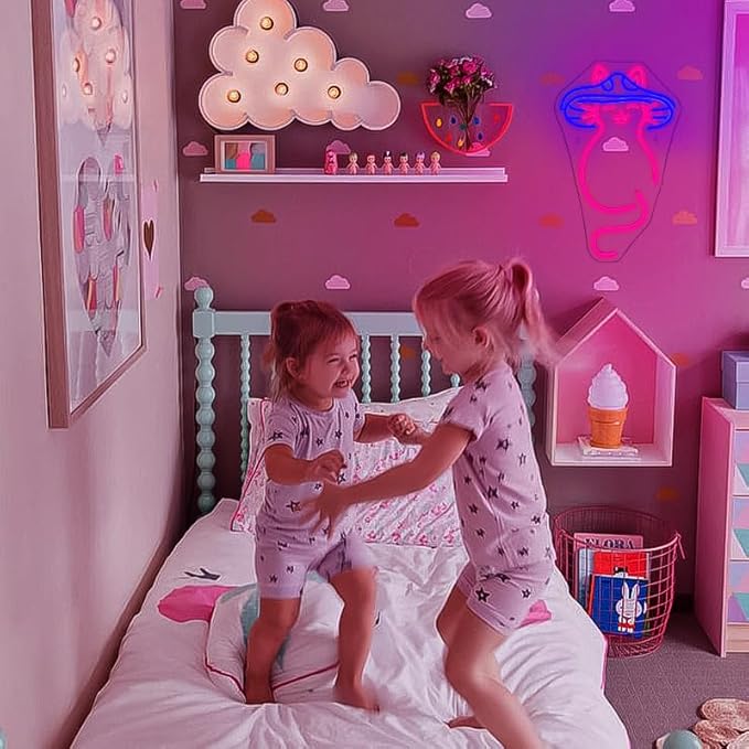- High Quality Neon Sign: Mushroom cat neon light signs are made of silicone tube+led neon strips +acrylic back plate. Led neon signs is bright, noise free and energy-saving,5V low voltage, long life, no risk of too hot or glass damage.