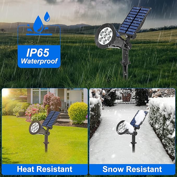 - 【IP55 Rating】 The solar spot lights designed to withstand dust and water jets. No need to worry about rainy day or any bad weather, rugged and durable. Perfect for garden, patio, driveway, pool area, pathway etc