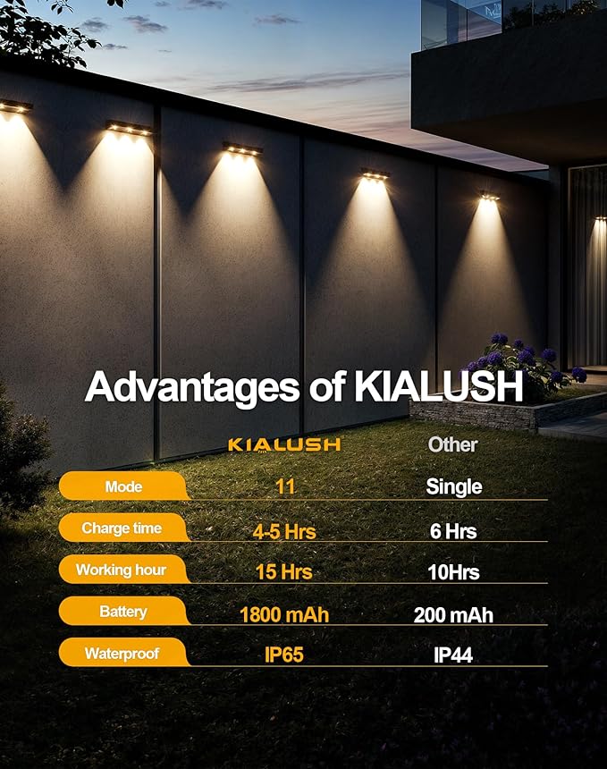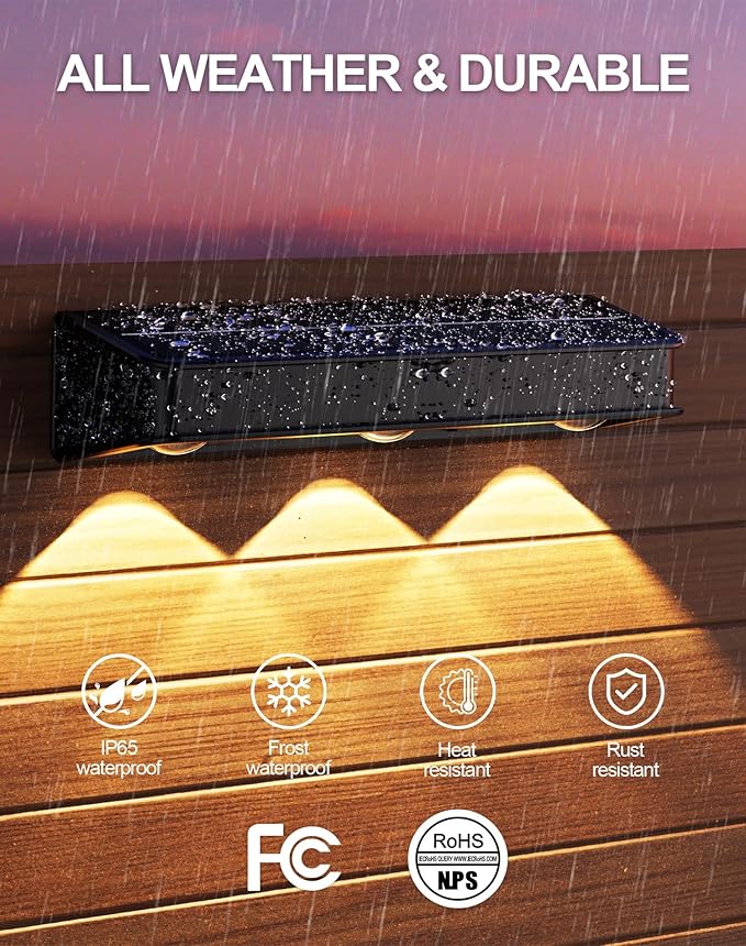 - 【1800mAh Battery & Long Working Time】We equipped the outdoor solar wall lights with a built-in 1800 mAh battery, which supports each outdoor solar light to light up continuously for more than 15 hours, and can guarantee the battery durability to meet the daily use of most families.