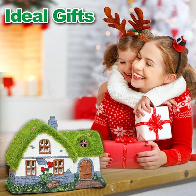 - Charming Design: Our solar-powered fairy-tale house statue features a delightful design, complete with a charming front door and five windows (four in front and one in the back). Measuring 7.3 x 3.6 x 5.2 inches, this decorative piece adds a whimsical touch to any garden, patio, or indoor space, creating an inviting atmosphere