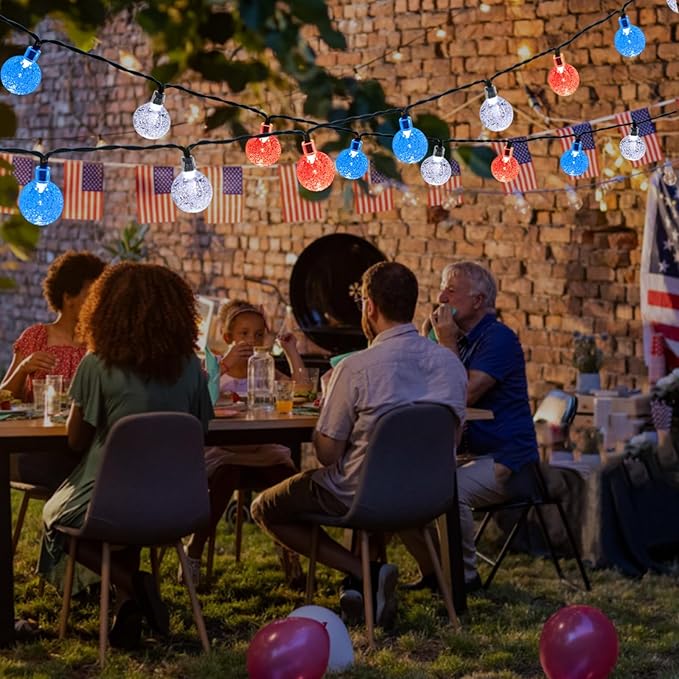 - 2025 Upgrade 4th of July Decorations Lights: The built-in memory chip remembers your last mode setting, eliminating the need for daily resets. Perfect for 4th of July, National Day, Independence Day, Memorial Day, Veterans Day, Presidents Day and other celebrations, these solar globe string lights add a touch of magic to any occasion.