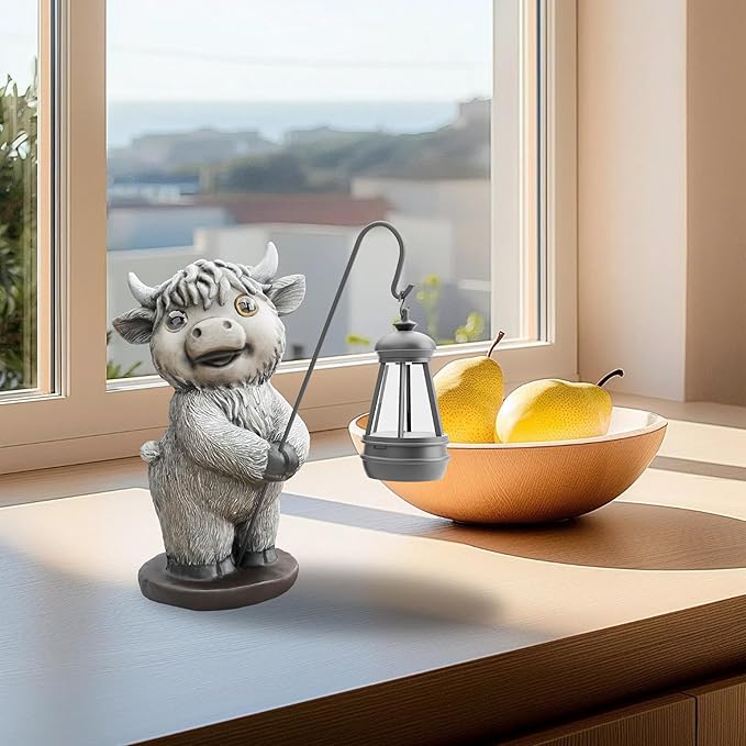 - Wide Application: Highland Cow Outdoor Solar Figurine Lights have a wide range of applicability; you can place them in your front yards, lawns, patios, porches, front steps, balconies, flower beds, stairs, poolside, potted plants, windowsills, or indoors as ornaments.