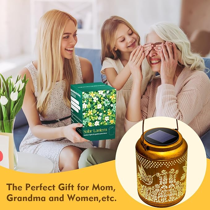 Hyrion Hummingbird Solar Lanterns Outdoor Waterproof Metal Hanging Lights, Garden Decor Gifts for Women, Mom, Grandma Solar Decorations for Yard, Patio, Backyard, Porch, Lawn, Tabletop, Walkway
