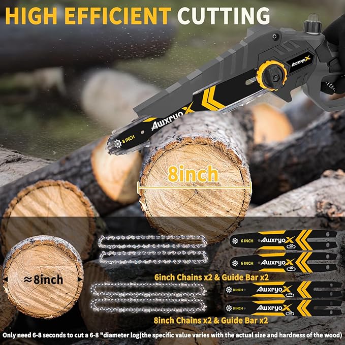 - 8&6 Inch 2-1 Chain Saw - AwxryoX adopts 8 inch and 6 inch Dual size hand saws for tree trimming to meet 95% of daily life cutting needs, it is paired with two 8 inch guide chains, two 6 inch guide chains,, which allows you to choose different saw sizes according to various needs for timber cutting, twig shearing, garden pruning, and shrub pruning. Widely used in farms, gardens, forests, parks, greenhouses, ranches and orchards
