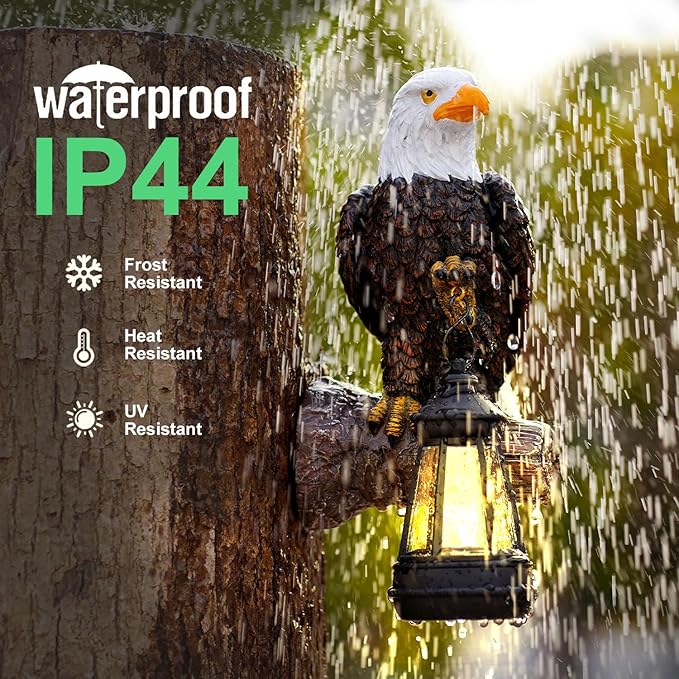 Eagle Tree Hugger with Solar Lantern - 8 Inch Resin Eagle Statue for Outdoor Garden Decor - Ideal Eagle Housewarming & Birthday Gifts for Grandma Mom Women