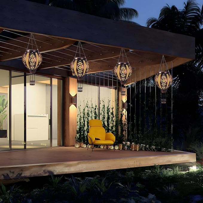 - 【Easy to Use】-- These solar hanging lanterns are suitable for all kinds of scenes.It is an excellent decoration for gardens, patios, fence, paths and even shed. It can be hung on the porch and the tree. Perfect for birthday gifts for women, mom, Christmas, New Year, holidays, parties, weddings and so on.