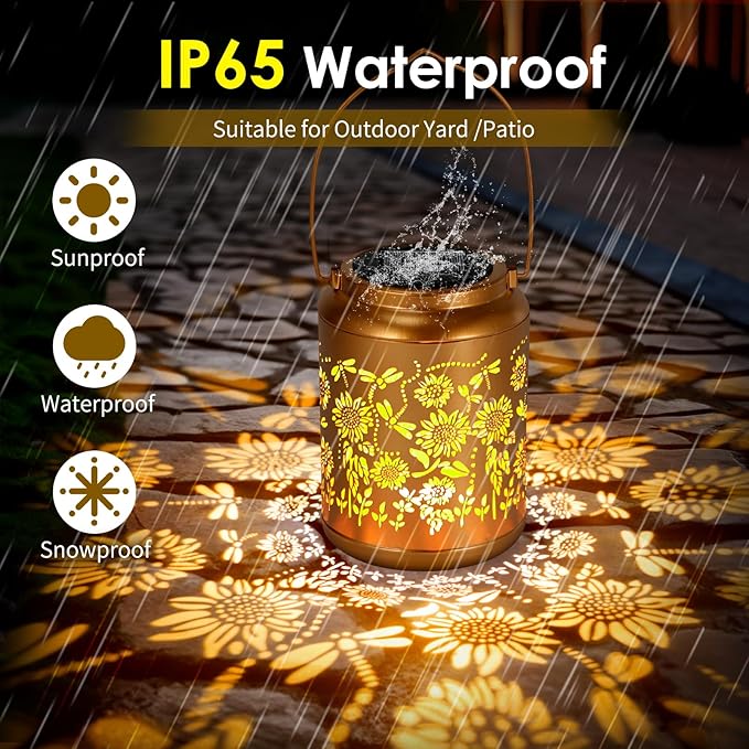 - Durable & IP65 Waterproof: Outside solar lantern is made of premium and strudy metal. IP65 waterproof rating design, don't worry about rain, solar garden lights can work on rainy days. Solar power supply, no electricity charge, no power cord required, easy to use