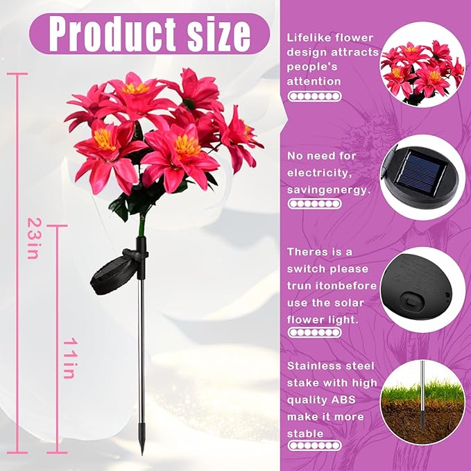- Realistic Design& Bigger Flower &Brighter Light - Featuring a bigger Hydrangea flower design with super-bright LED lights, our Solar Garden Lights have a vibrant and realistic aesthetic. our Solar Garden Lights provide brighter and more vivid illumination, making them the perfect addition to any outdoor space!