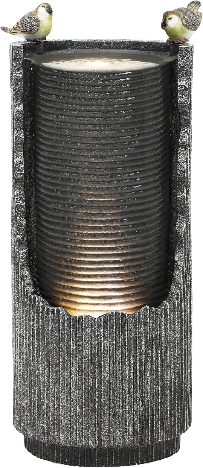 - WARM LED LIGHTS: The warm LED lights of this Outdoor Fountain with Light add a touch of magic. As the trickling water dances in the warm glow, it creates a stunning visual display, setting a serene and enchanting ambiance for your outdoor evenings.