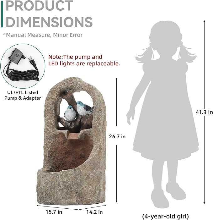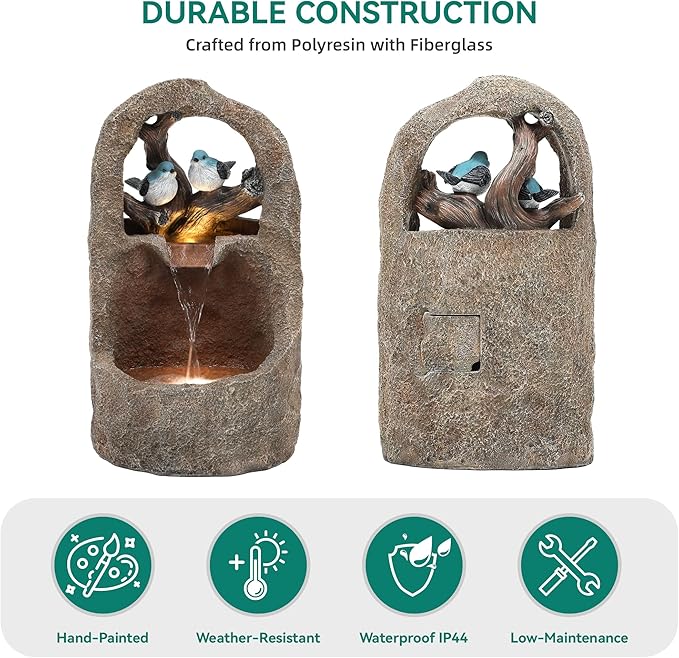 - Weather-Resistant Resin Buildโ : Crafted from premium resin and fiberglass with a hand-painted finish, this outdoor fountain is resistant to weather, rust, and scratches. It delivers long-lasting beauty with minimal maintenanceโan ideal accent for your outdoor dรฉcor all year round.