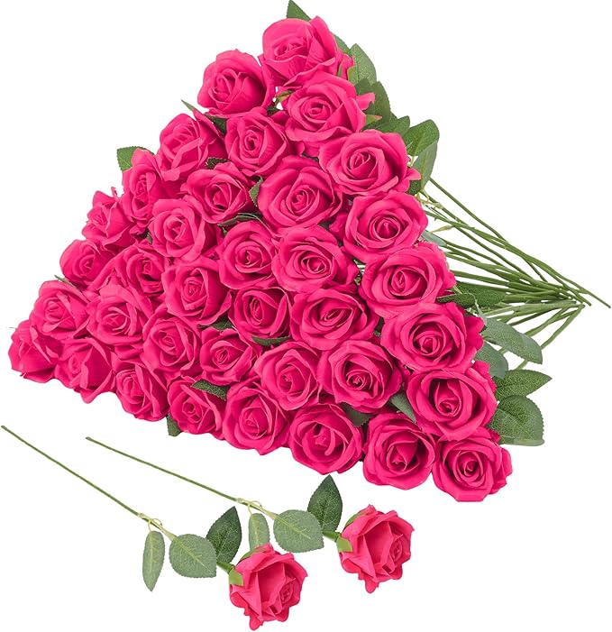 - Floral Elegance: Receive 36 hot pink artificial roses. These lifelike blooms boast a realistic appearance, soft touch, and vibrant colors, adding elegance and beauty to any space