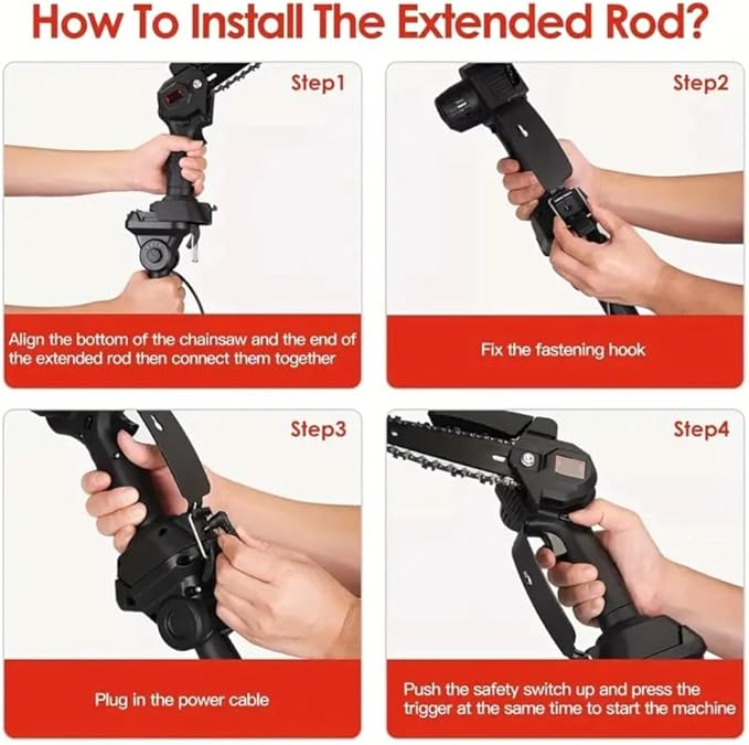 - 2-in-1 Design Combination:2-in-1 Multifunctional Chainsaw combines a chainsaw with an extension rod to provide a versatile tool for gardening work. One tool serves two purposes, you can use a chainsaw alone to trim lower branches or install an extension rod to handle overhead work.