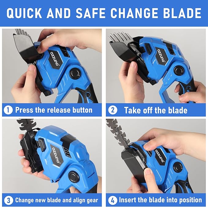 - 【2-in-1 Grass Shears & Shrubbery Trimmer】Equipped with dual-layer steel blades, the short blade (5.12"wide) is ideal for cutting grass and small patches of lawn, while the long blade (9.06"long) is designed for trimming hedges, shrubs, trees, and ornamental bushes. For hardwood branches, specialized tools such as pruning shears or a mini chainsaw may be required. Please apply liquid oil to the hedge trimmer blades after use to maintain and protect them