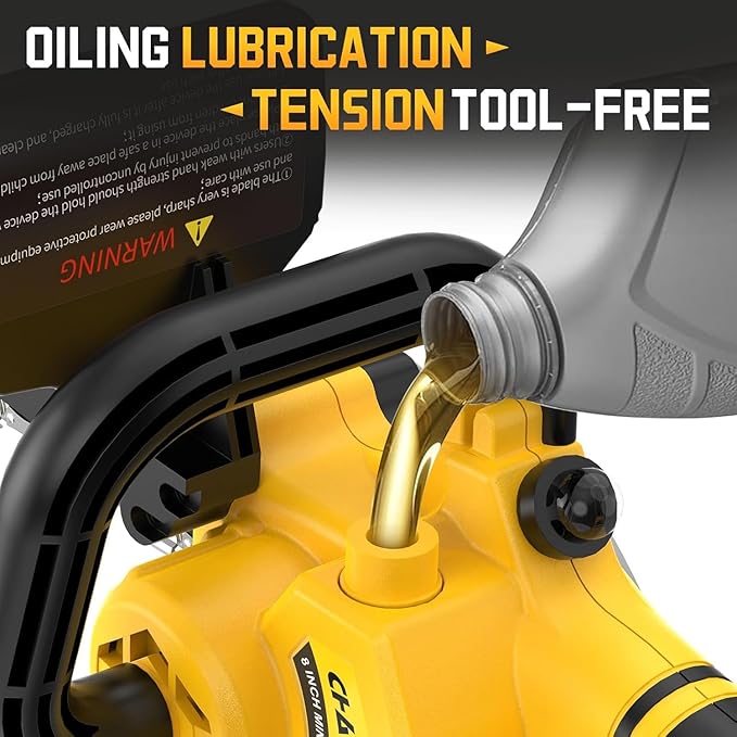 - 【Auto-Oiling System】Experience the convenience of an Mini Chainsaw! Our upgraded lubricating oiler lets you easily and quickly lubricate the chain, allowing you to cut wood and branches smoothly and efficiently. With our chainsaw, you'll enjoy extended chain and battery life - making your job easier and stress-free. Get it and take your woodcutting to the next level!