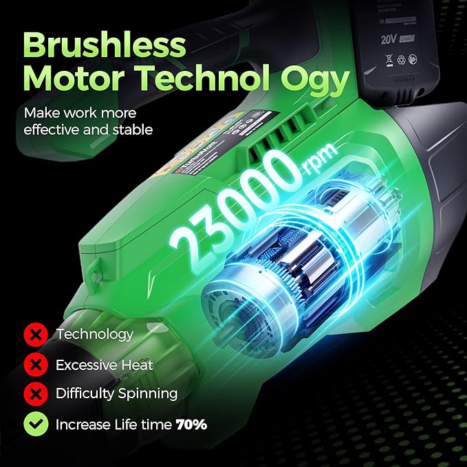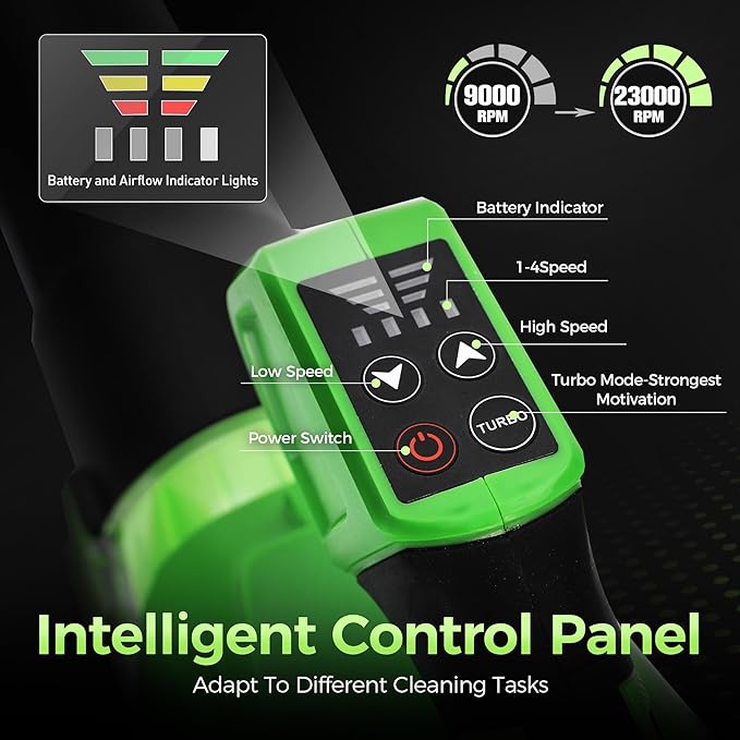 - 【Adjustable Speed & Multi-function】Our leaf blower cordless offers 4 speed levels, allowing you to choose the ideal airflow intensity for various cleaning tasks and environments. The low-speed mode is perfect for light cleanup, such as dust and small debris, while the medium and high-speed modes provide powerful airflow to tackle heavier, more stubborn debris. The extension tube design makes cleaning more efficient and flexible, resulting in a better use experience